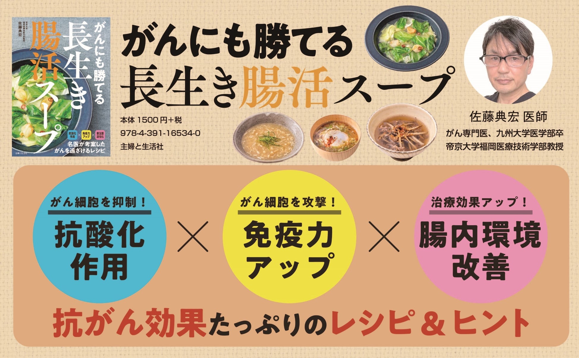 2023年~2024年に出版した『がんにも勝てる長生きスープ』『がんにも勝てる長生き常備菜』が話題の、がん専門医・佐藤典宏先生が手がける新作レシピ集が満を持して登場。
