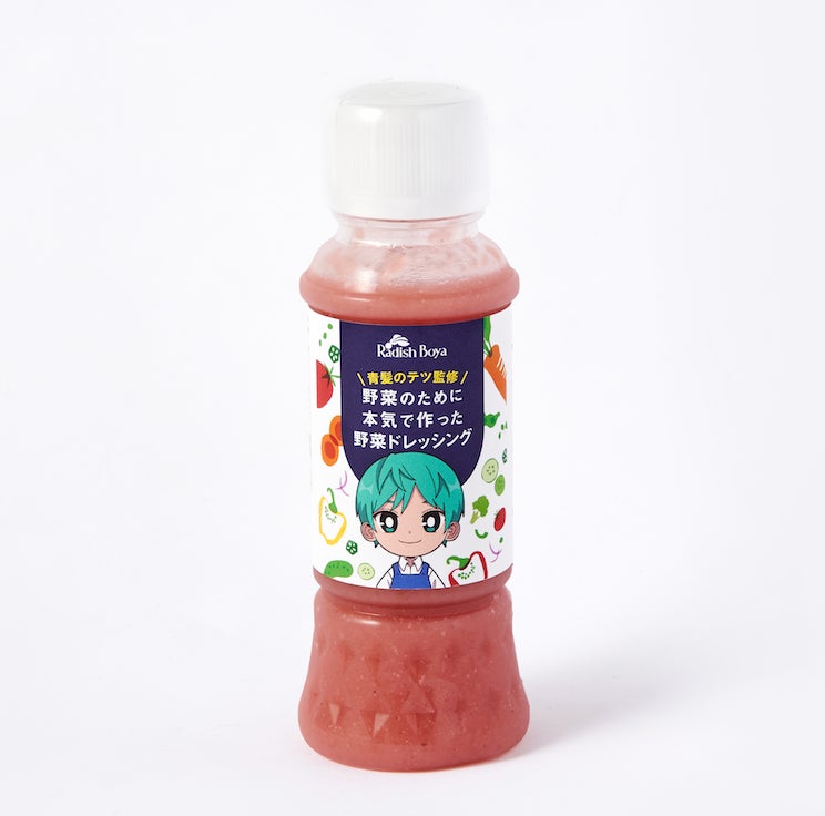 八百屋を10年以上続ける中で「より多くの方に野菜をもっと食べてもらいたい」という想いからSNSで野菜の情報を発信するようになりました。そんな中でフォロワーさんより「テツさんおすすめの調味料を教えてください!」というお声を多くいただくようになりました。そこで、野菜を美味しく食べられる、自分が心からおすすめできるものを作ってしまおう!と思い、野菜の食品宅配サービスを提供する「らでぃっしゅぼーや」さんと協力し、ドレッシングを作ることとなりました!ビーツの色素を使った鮮やかなピンク色が特徴で、見た目だけでなく野菜がたくさん食べられるよう試作を繰り返し、徹底的に味にもこだわりました。僕の自信作なので、ぜひ一度お試しください!