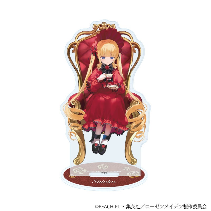 どこにでも飾りやすい縦横最大15cmというサイズで、椅子に腰かけた真紅たちのイラストを眺めることができるアクリルスタンド。お部屋に飾れば、自分の部屋でドールたちが一休みしているような気分になれるかも?