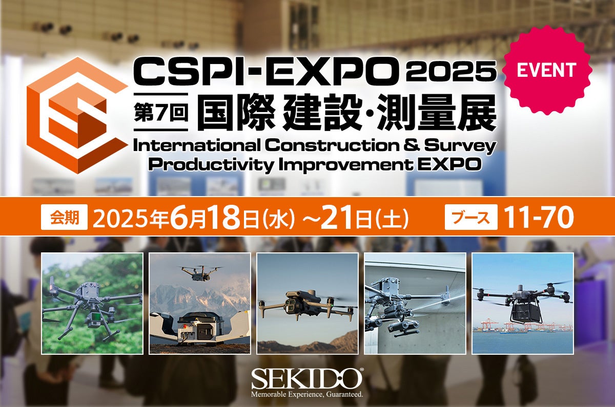 DJI(ディージェイアイ)正規販売代理店としてドローンビジネスの最先端を支える株式会社セキド(本社:東京都港区、代表取締役:⼤下貴之)では、2025年6月18日(水)~21日(土)に幕張メッセにて開催される「CSPI-EXPO2025 第7回 国際 建設・測量展」に出展いたします。セキドブース[11-70]では、業務効率化・省人化・安全性向上に貢献する製品を多数展示。実機デモや事例紹介を通じて、導入後の活用イメージを具体的にご確認いただけます。