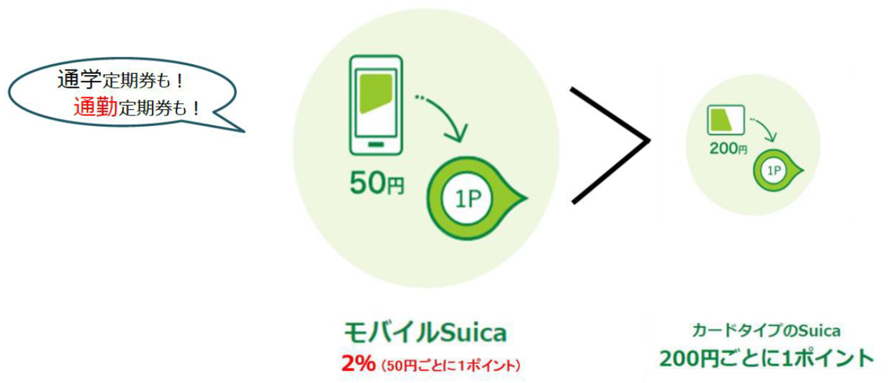 ※カードタイプのSuicaでの定期券購入では貯まりません。