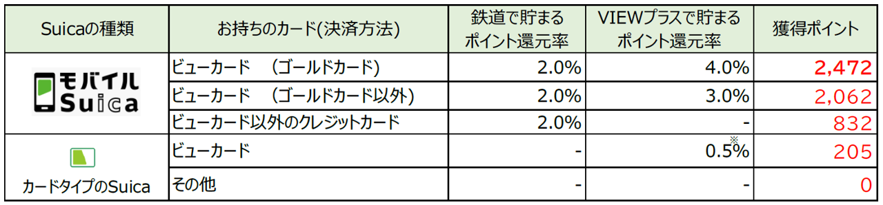 ※カードタイプのSuicaでの定期券購入はVIEWプラス対象外となり、通常のポイント付与0.5%の付与となります。