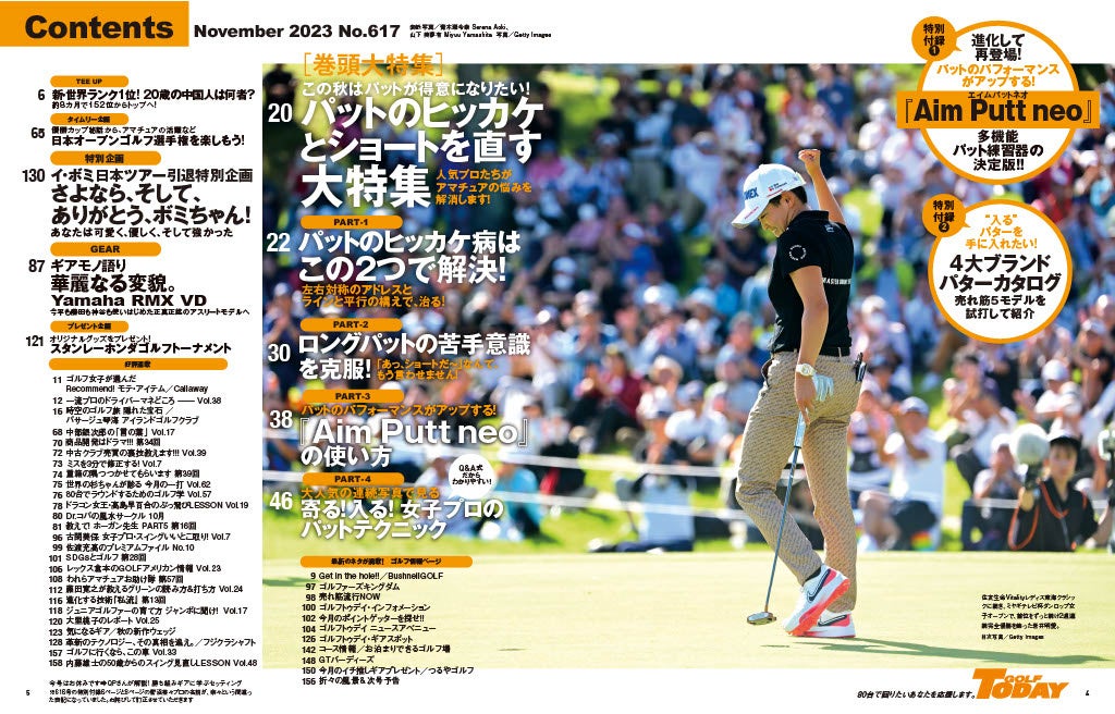 特別付録『多機能パット練習器~Aim Putt neo エイム パット ネオ~』付き!『GOLF TODAY(ゴルフトゥデイ)2023年11月号』は10月5日発売!!