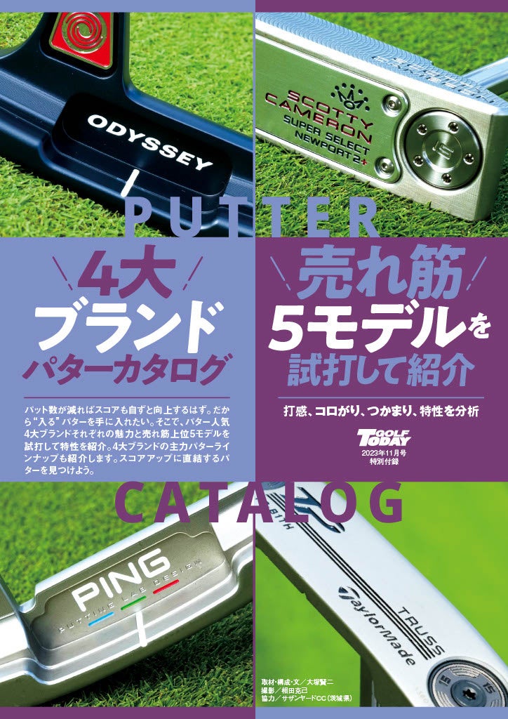 特別付録の2番目は4大ブランド、5モデルの完全カタログ。入るパターを手に入れたいゴルファー必見。試打して紹介しています。