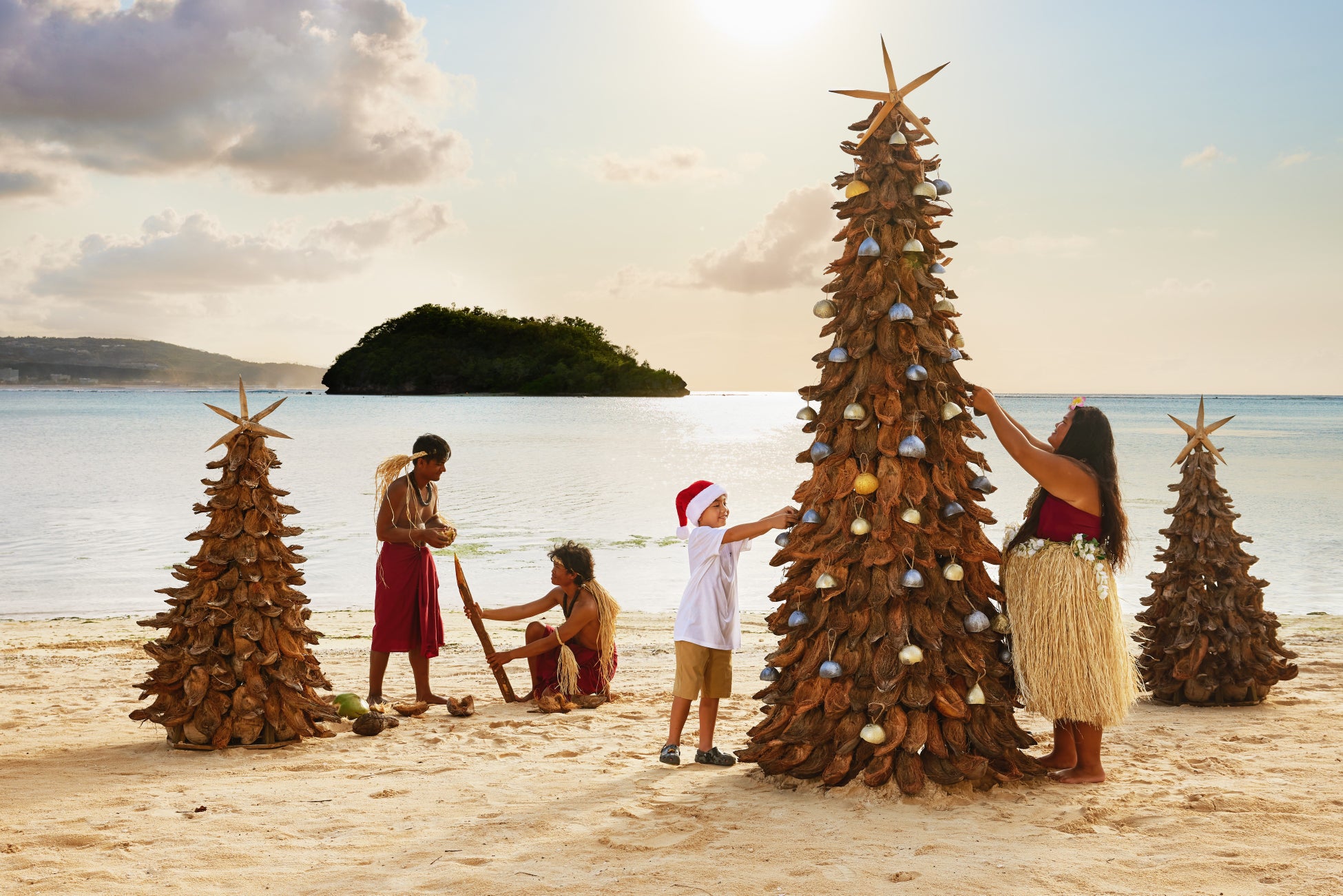 グアムのルーツに触れるビーチリゾート「リゾナーレグアム」では、2024年12月1日から25日までの期間、「タノクリスマス」を開催します。「タノクリスマス」では、ココナッツの皮や殻で作ったツリーでクリスマスを祝います。また、漂流物をアップサイクルしてオーナメントにするアクティビティに参加したり、毎週火・木・日曜日に開催される「Gupot Kanton Tasi(海辺のパーティー)」では、南国のダンスと音楽を楽しみながら、タノを使ったチャモロ料理のテイスティングができます。