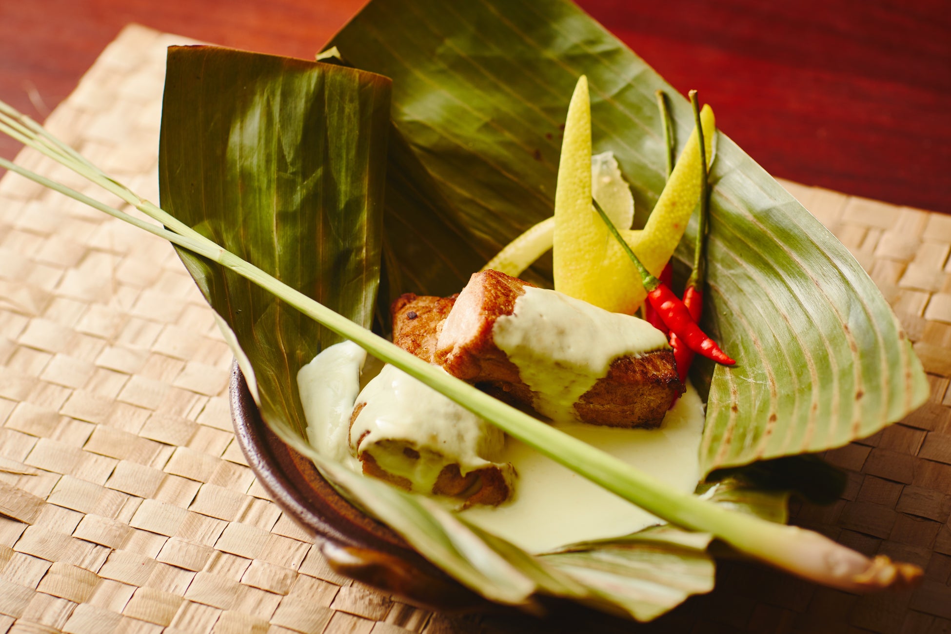 リゾナーレグアムのシグネチャーイベント「Guput Kanton Tasi(海辺のパーティー)」(*1)では、伝統的なチャモロ料理のフードテイスティングが楽しめます。バナナの葉で包み蒸しにした魚料理や、グアムのクリスマスの伝統的なデザートであるバナナドーナツが特に人気です。バナナドーナツはもっちりとした食感と甘酸っぱい味が特徴で、グアムの南国らしい雰囲気の中、音楽やダンスを楽しみながらクリスマスを祝うことができます。