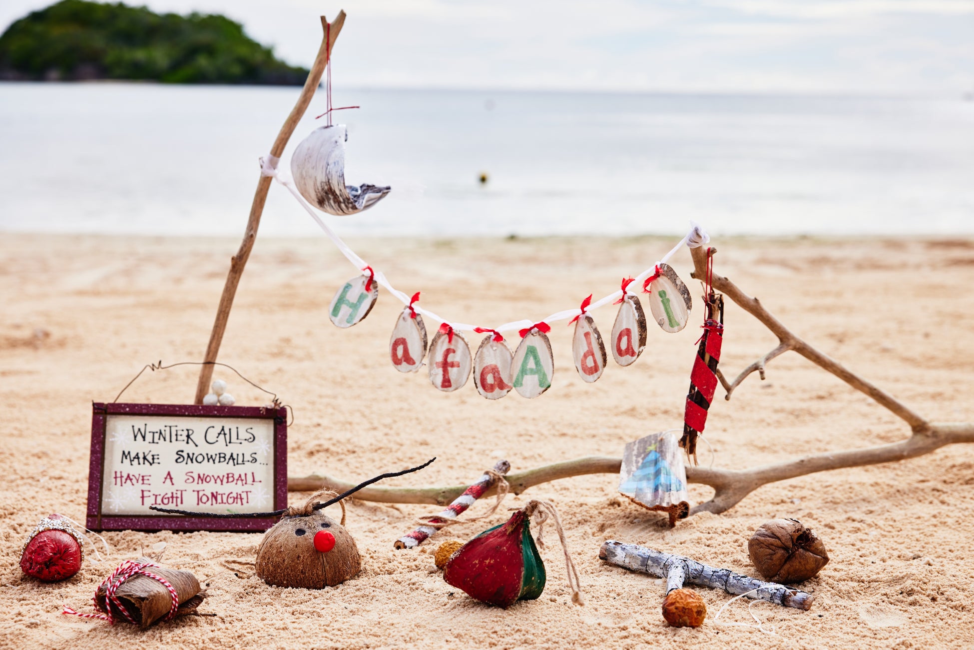 ツリーに飾るオーナメントは、ビーチに流れ着いた流木やココナッツの実や葉など、タノの素材から作ります。このアクティビティはビーチサイドを歩きながら必要な素材を集めることから始まり、館内で拾った素材を自由に組み合わせて制作します。ご自身が作ったオーナメントはお土産として持ち帰るか、館内のクリスマスツリーに飾ることができます。