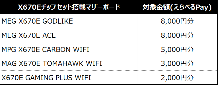 対象製品の購入&応募で、1製品につき最大8,000円分のえらべるPayをプレゼント!パソコンを1台組み立てる場合、本キャンペーンを利用すると最大22,000円お得! 2024年4月26日(金)より開始