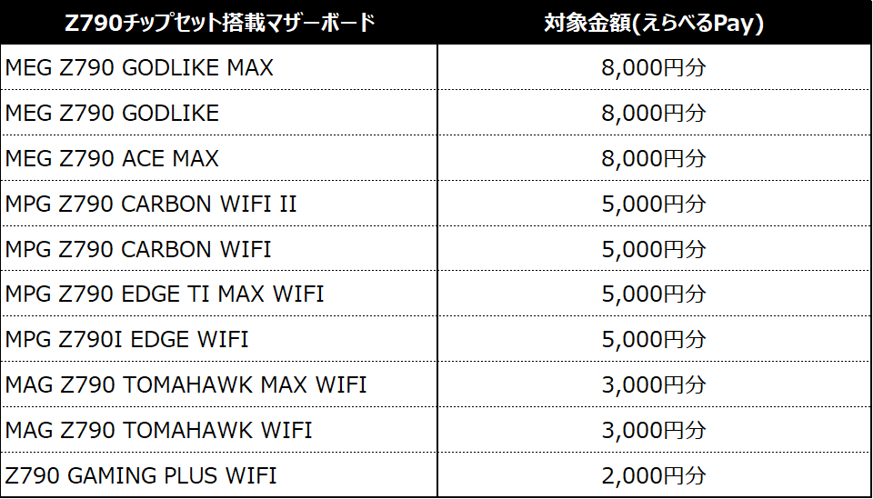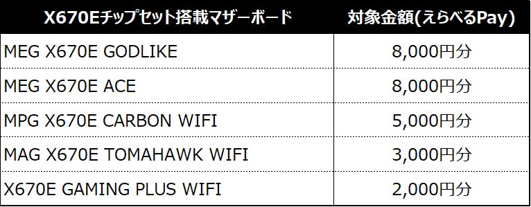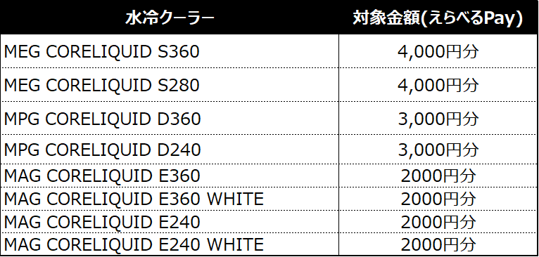 キャンペーン対象製品を1点ご購入いただくと最大8,000円分のえらべるPayをプレゼント。
