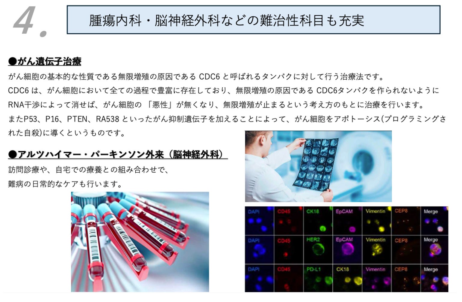 とくに、美容と再生医療の分野においては、ゲノムリペア療法(AGA薄毛治療)・幹細胞治療・最先端のピコレーザーによる肌治療など、国内外でも注目を集める先進技術を導入。