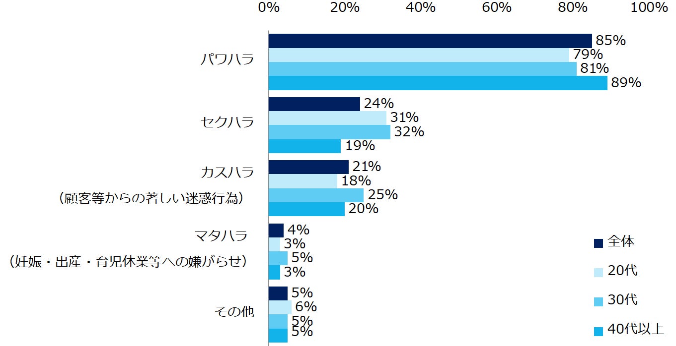 64%が「職場でハラスメントを受けたことがある」。職場で受けたハラスメント、85%が「パワハラ」と回答。