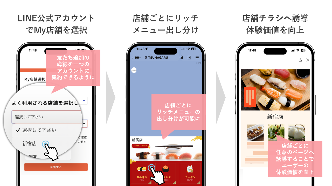 本機能は、流入経路、ID連携、アンケートなど、ユーザー属性やステータスに応じてリッチメニューを出し分け、一人ひとりのユーザーに寄り添ったメッセージを送信できる機能です。