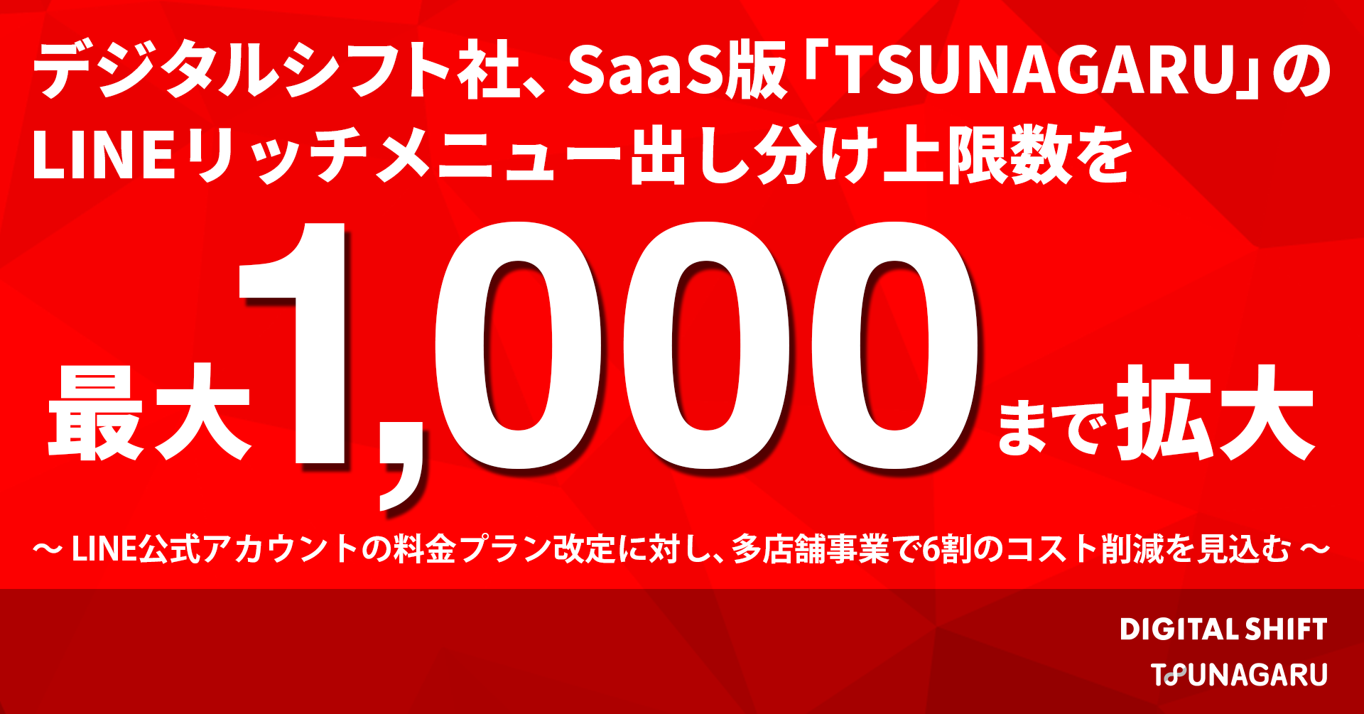 デジタルシフト社、SaaS版「TSUNAGARU」のLINEリッチメニュー出し分け上限数を最大1,000まで拡大