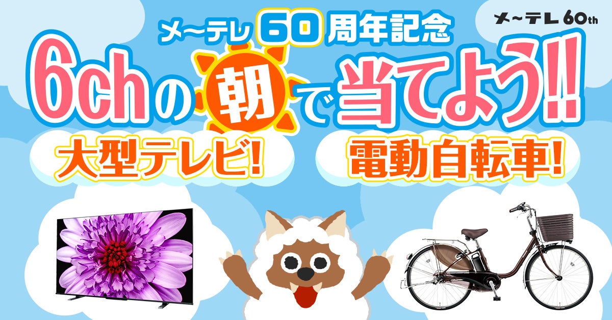 メ~テレ 60周年記念 6chの朝で当てよう!!大型テレビ!電動自転車!