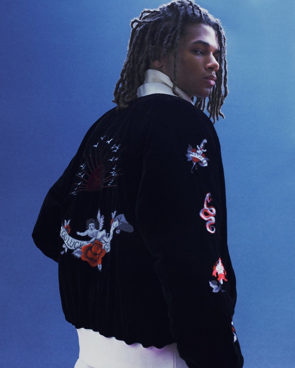 TAION10周年を記念して作成されたアイテムで、クラシックなスカジャンの美学をベースに、現代的な感性と機能性を融合させたリバーシブル仕様のボンバージャケット。表面は軽くてソフトなクラッシュタイプのレーヨンベルベットを使用し、刺繍のモチーフにはS’YTEのアーカイブデザインが散りばめられている。裏面はミニマルなキルティング加工で、幅広いスタイルに対応できる一着。