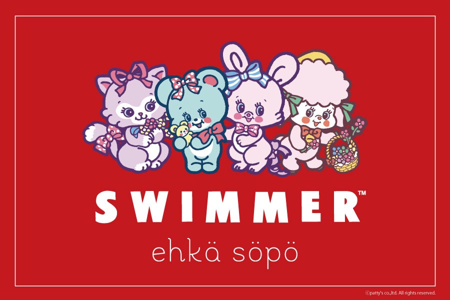 どこかレトロな古着のエッセンスをひとさじ加えて、自分らしさのあるガーリーカジュアルスタイルを提案するehka sopoと世界観がマッチすることから、この度初のコラボレーションを実施。SWIMMERのレトロ可愛いキャラクター達を主役に、ehka sopoらしいアイテムを全6型展開いたします。