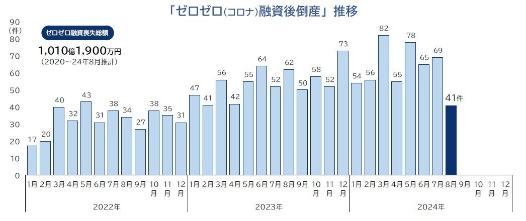 ■ゼロゼロ(コロナ)融資後倒産 2024年8月は41件発生 初めて前年同月を下回る