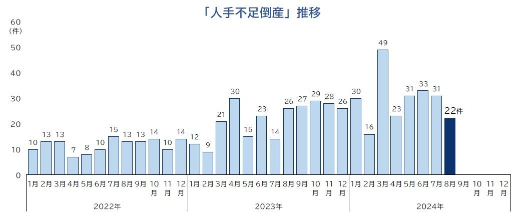 ■人手不足倒産 2024年8月は22件発生 1-8月累計は過去最多ペース