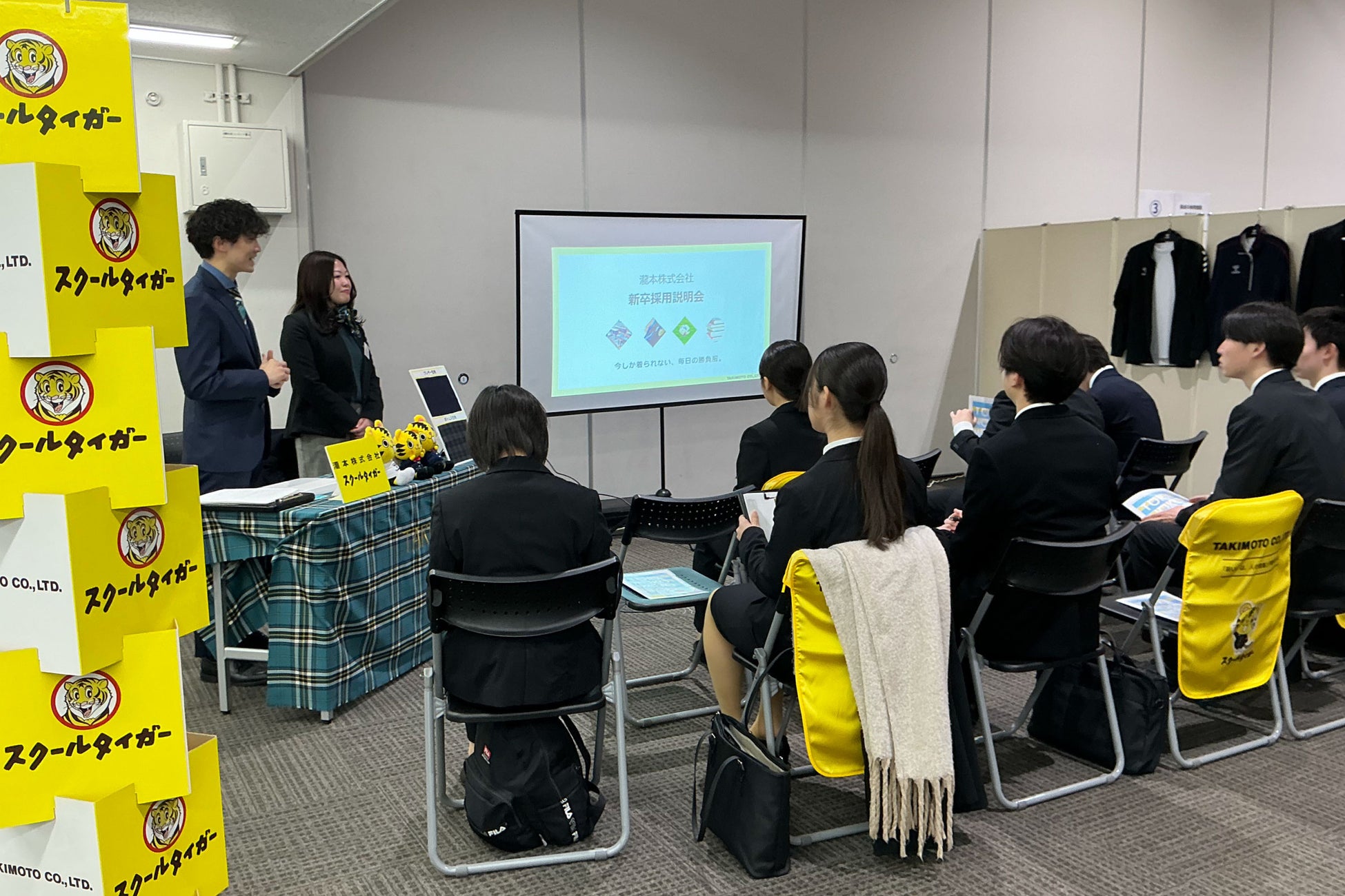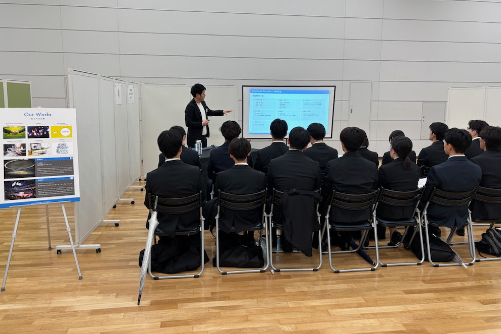 今年で5回目となるスポーツ系企業の合同企業説明会「アスカチ2027」は、スポーツメーカーやプロスポーツチーム、スポーツ施設の建設業、健康食品メーカーなど、いずれもスポーツや健康に関連する企業が集まった合同説明会。各会場には10社がブースを設置し、30分の説明会を5回実施。学生は興味のある5社のブースを熱心に巡りました。