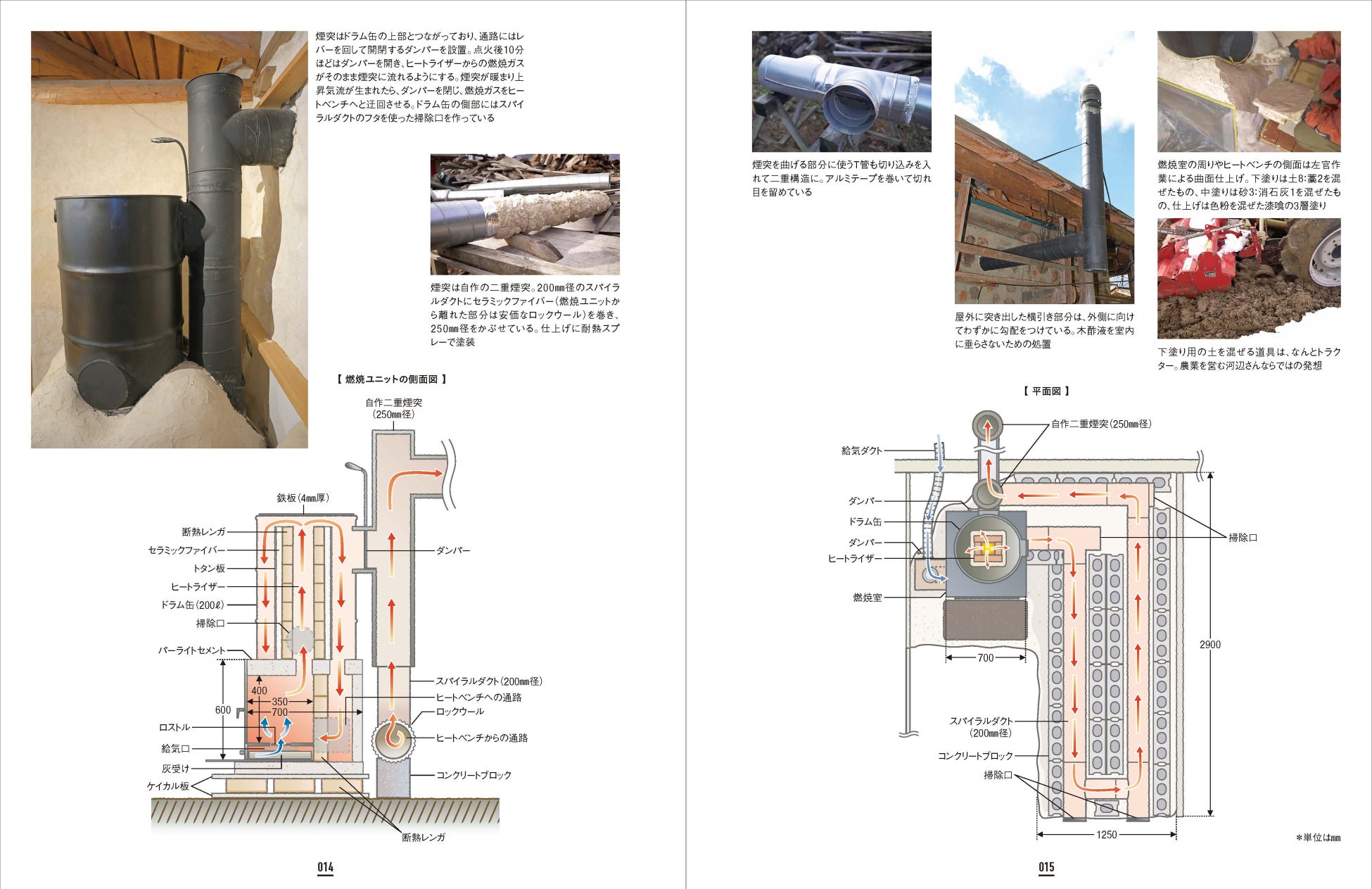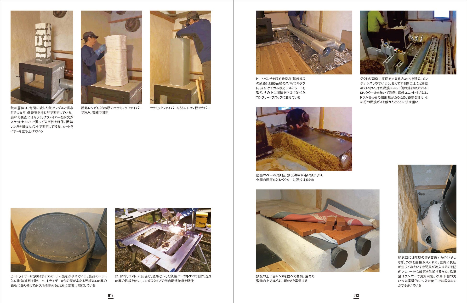 本書では約30種の蓄熱ストーブを、上記のような観察する目線で詳しく掘り下げています。実際的な蓄熱ストーブ作りのノウハウをこれほど多く集めた資料は、世界中でも稀でしょう。これから蓄熱ストーブを作りたい人にとっては最良の参考書に違いありません。