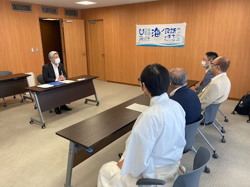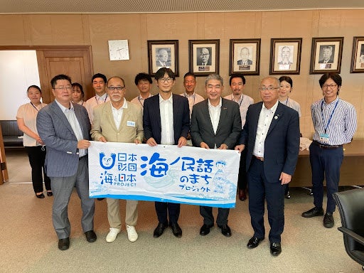 日本中に残された海にまつわる民話を発掘し、その民話のストーリーと、そこに込められた「想い」「警鐘」「教訓」を、親しみやすいアニメーションとして映像化します。当日は、ゼネラルプロデューサーをはじめとする事務局メンバーが「海ノ民話のまち」として認定した15のエリアのうちの1つである滋賀県大津市の佐藤健司市長を表敬訪問し、「海ノ民話のまち」認定証贈呈式を行いました。