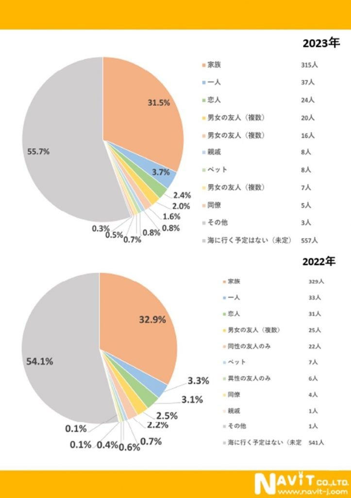 - 今年の夏も、海に行く相手は「家族」と回答した方が一番多い