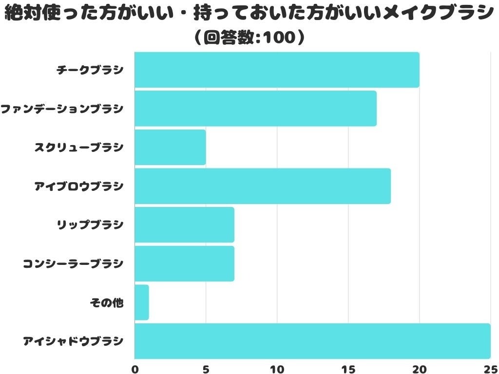 100人にアンケートを行ったところ、「アイシャドウブラシ」と回答したのは全体の25.0%でした。