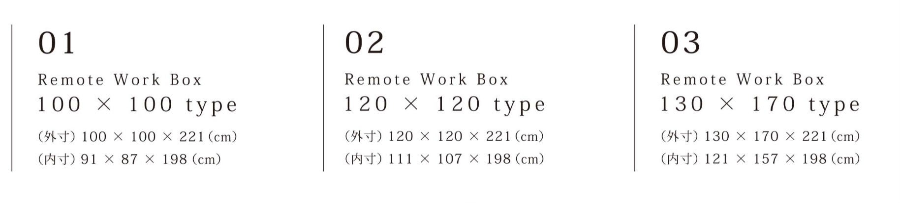 - 1台 100×100 type 参考上代価格 ¥750,000~(税別) ※詳細はお問い合わせ下さい。 設置に関する問い合わせ先 (株)ワールドスペースソリューションズ 03‐6887‐1320(9:30~17:30 ※土日祝除く)