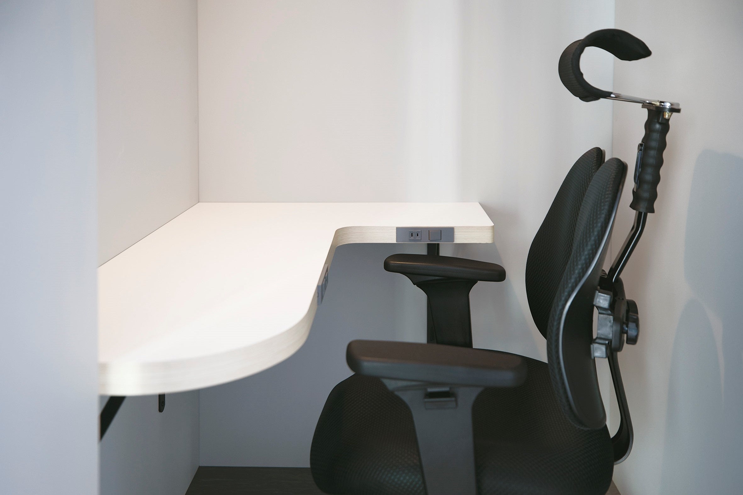 遮音性、照明効果、換気機能等はそのままに、テーブルの大きさや椅子の形状でより快適なワークスペースを演出。またアウターや羽織物が掛けられるハンガーも設置(荷物掛け用壁面フック)