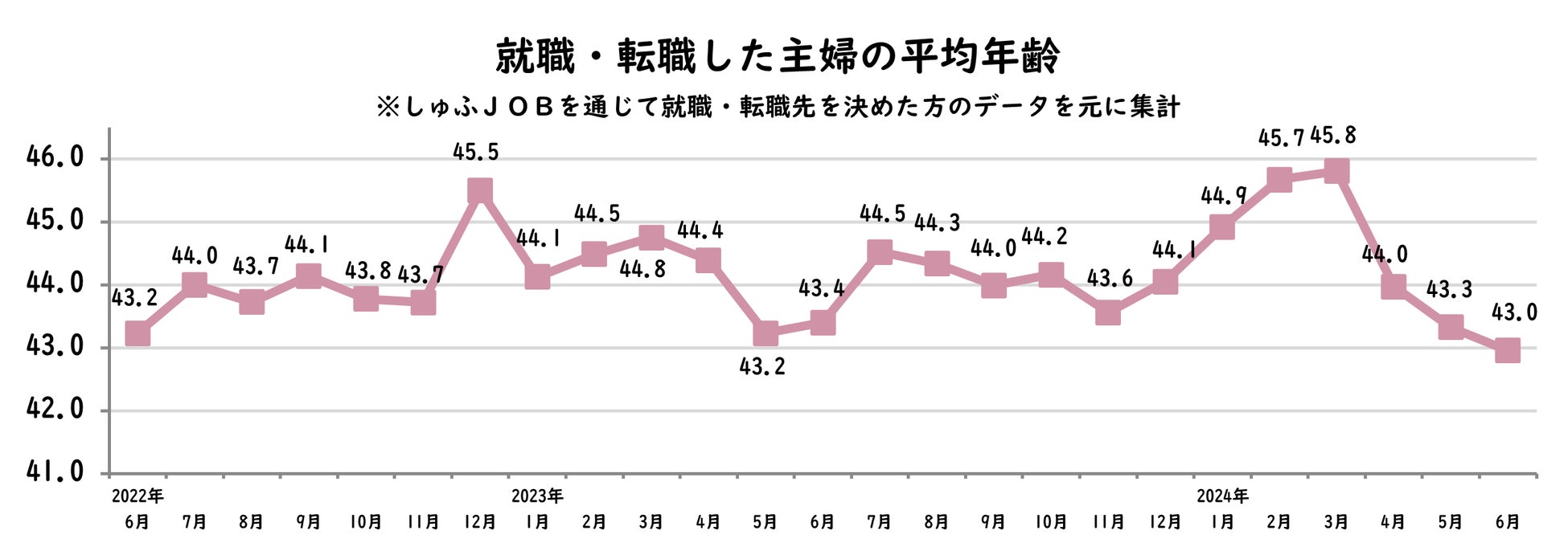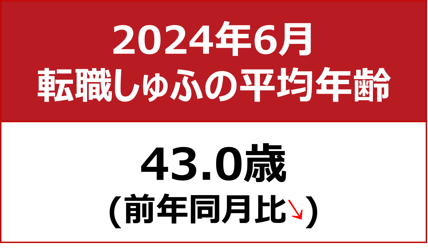【転職しゅふの平均年齢調査 2024年6月】43.0歳(前年同月比-0.4歳)