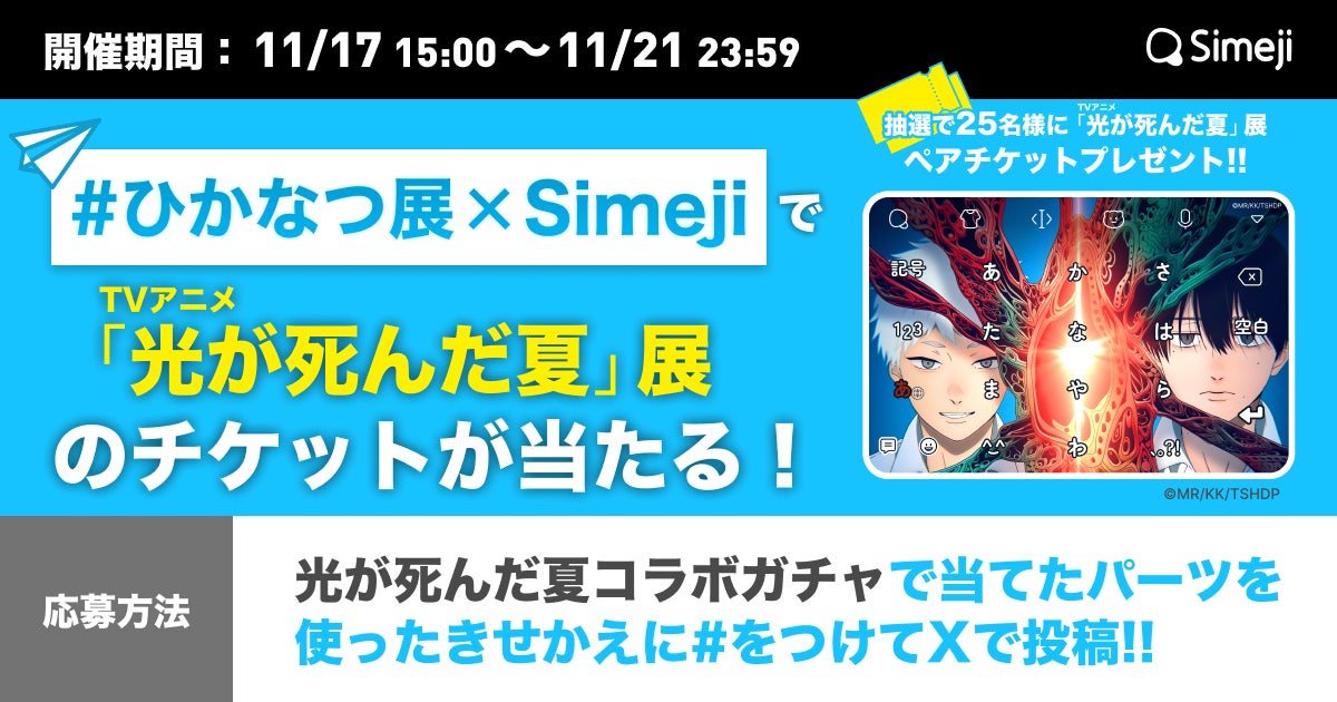 Z世代に大人気!キーボードアプリ「Simeji」、TVアニメ『光が死んだ夏』展とのコラボキャンペーンを追加開催!