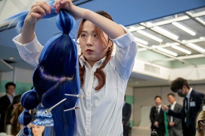 「新人スタイリング部門」では、課題スタイルに合わせたウィッグの取り付け技術やスタイリング技術を競います。若手社員の技術力向上やモチベーションアップに繋げるため、2003年に再開した部門です。出場者は制限時間30分で、事前にカット・カールしたウィッグをマネキンに付け、あらかじめ指定された「課題スタイル」に合わせてスタイリングを行います。審査では競技中の「手際の良さ」、「丁寧さ」や、「課題スタイルに忠実な仕上がりになっているか」が評価のポイントとなります。