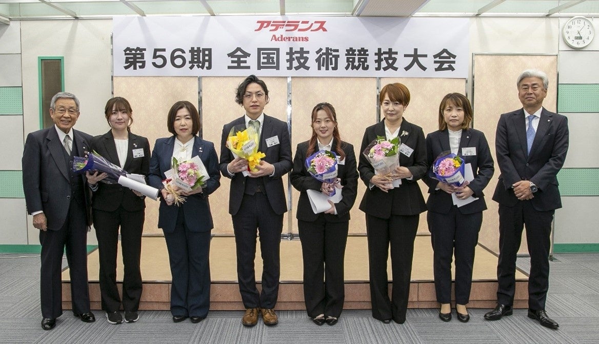 「アデランス全国技術競技大会」は1980年から開催されている当社の歴史ある大会です。全国の技術者が技だけでなく、センスや発想力を競い、互いを高め合うことで、日頃の教育・育成の集大成を再確認する機会となっています。お客様に心からご満足いただける最高の商品を提供するべく、今後も努力と研鑽を重ね、経営理念である「最高の商品」「最高の技術と知識」「心からのおもてなし」の実現を目指してまいります。