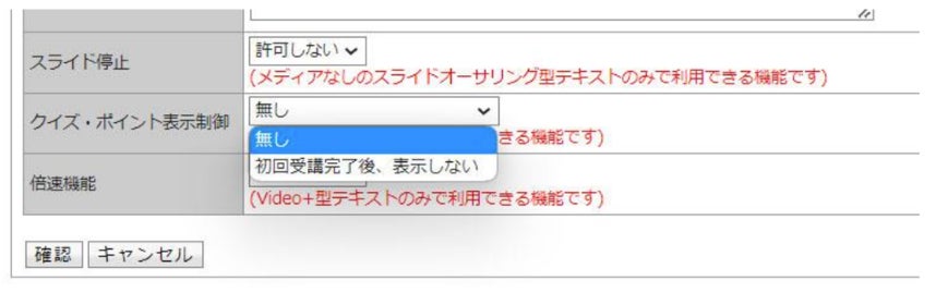 Video+オプションについて、受講完了後に視聴した際のクイズ・ポイントの表示 ON/OFF を制御できる機能を単元設定画面に追加しました。「初回受講完了後、表示しない」を選択した場合、既に受講を完了している Video+の単元を復習などで視聴する際にクイズとポイントが表示されなくなります。