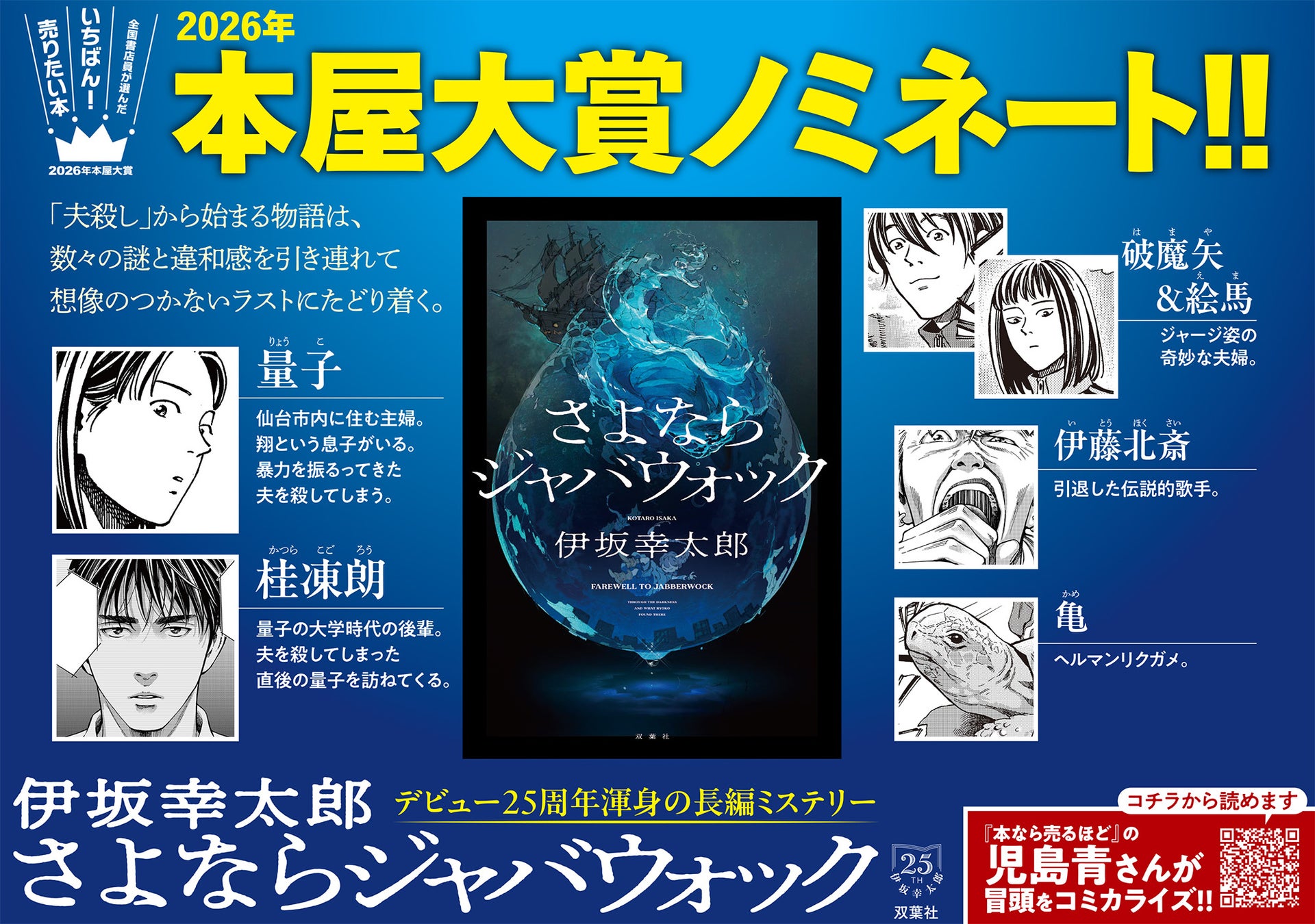 「全国の書店員がいちばん売りたい本」を選ぶ、2026年本屋大賞のノミネート作が発表され、双葉社からは、伊坂幸太郎さんの『さよならジャバウォック』と、湊かなえさんの『暁星』が選出された。ノミネートを記念して、2作の魅力をご紹介します。