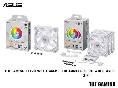 ASUS JAPAN株式会社は、ゲーミングシリーズのTUF GAMINGより高レベルのエアフローで低騒音、最大25万時間の稼働を可能としたケースファンの白色モデル「TUF GAMING TF120 WHITE ARGB」を発表しました。