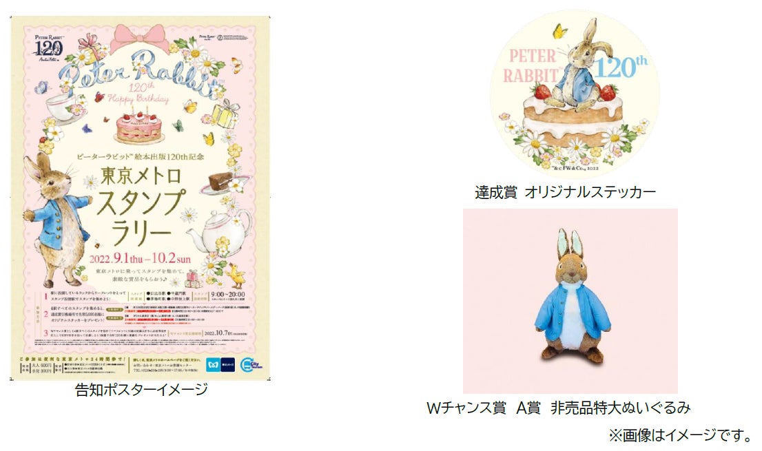 東京地下鉄株式会社(本社:東京都台東区、代表取締役社長:山村 明義、以下「東京メトロ」)では、「ピーターラビットTM絵本出版120周年記念 東京メトロスタンプラリー」を2022年9月1日(木)から10月2日(日)まで開催します。
