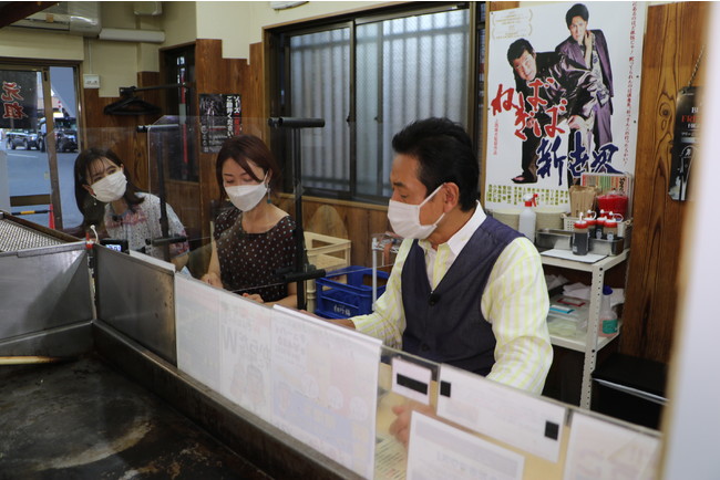 その後福島に向かうと斉藤おススメの金つばの名店でこの時期限定のかき氷を注文します。