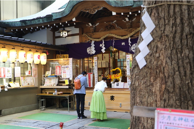 さらに足を伸ばして中之島へ。大阪市立科学館でサイエンスショーなどを楽しんだ後、中之島公園、さらに薬の神様として有名な少彦名神社へ。疫病退散を祈願します。