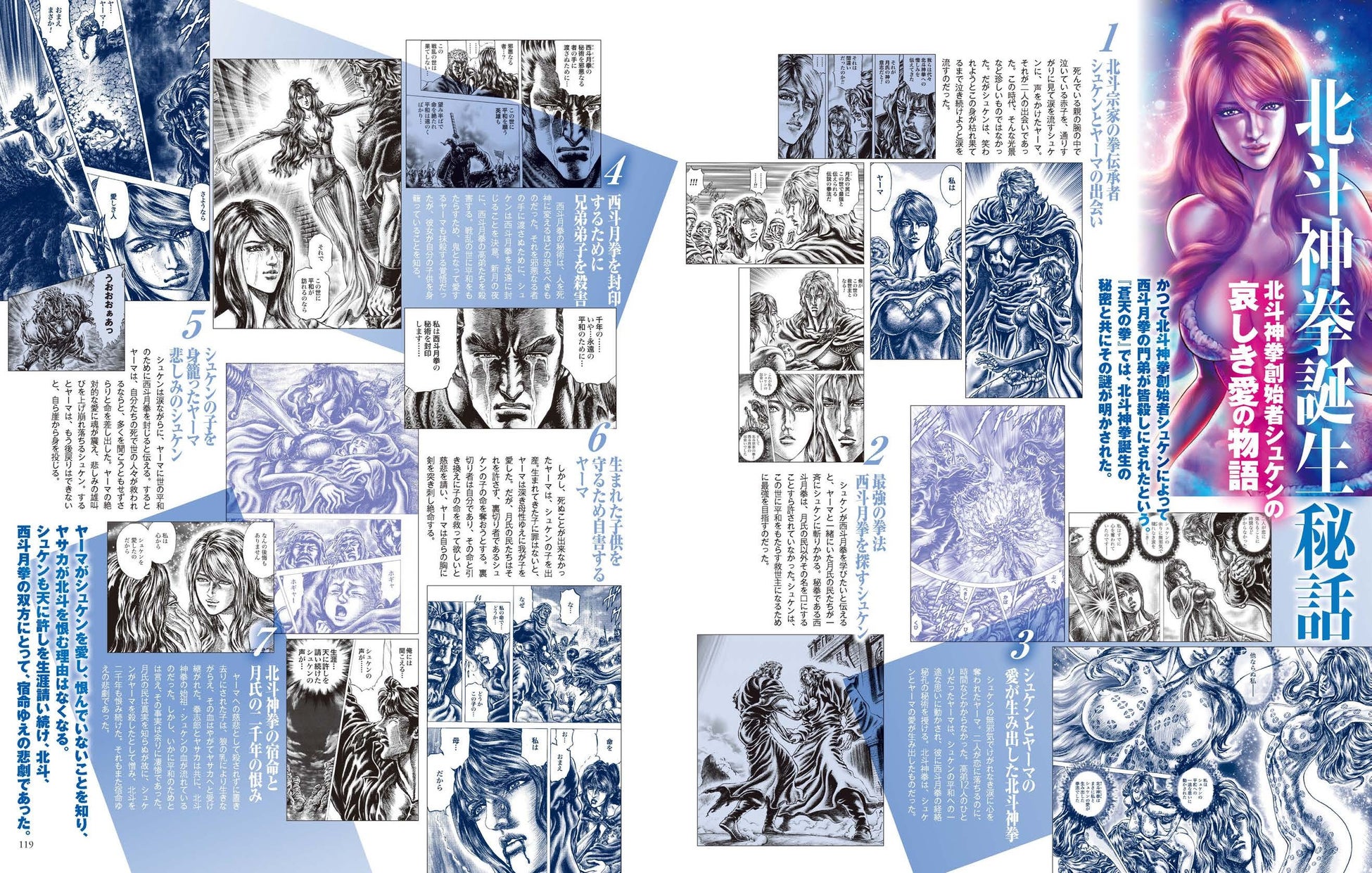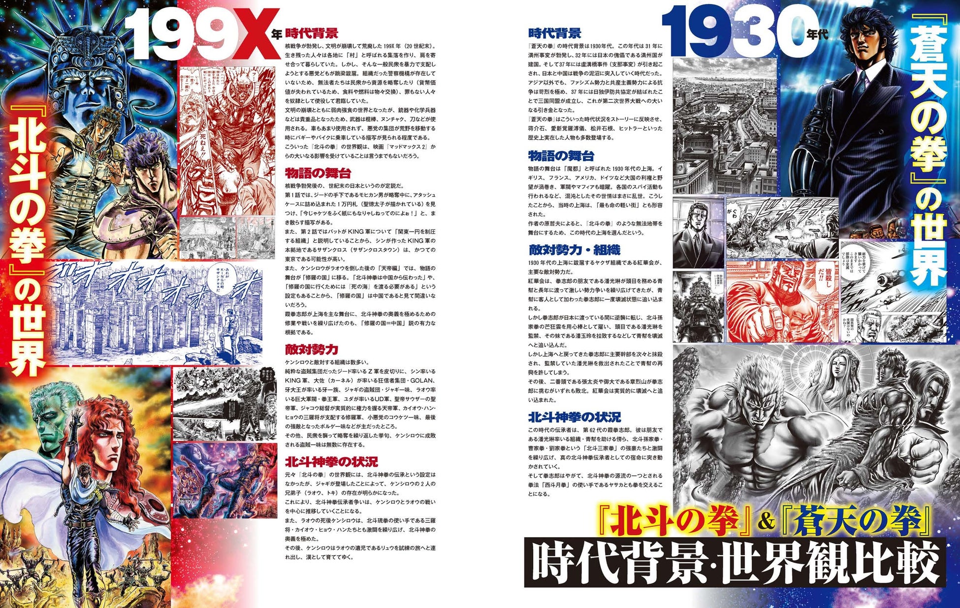 本書では「北斗神拳」ケンシロウと「蒼天の拳」拳志郎、2人の北斗神拳伝承者を徹底解剖する。巻頭からの豪華カラーイラストギャラリーやケンシロウとラオウ 壮絶な闘い「闘気を撃つ!の巻」の原画掲載。他にもストーリーや北斗三兄弟。名キャラクターを徹底解剖する永久保存版の1冊となっている。