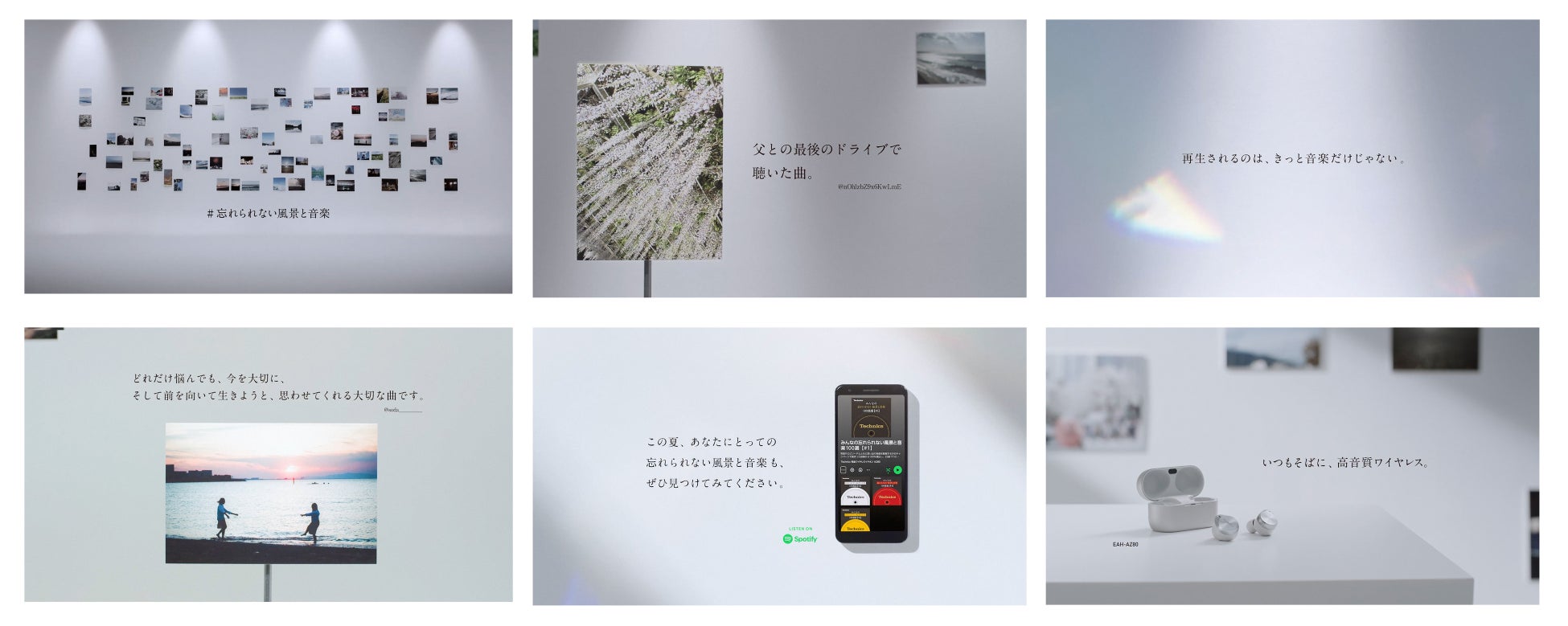 キーホルダーを剥がすと、その下には、第1弾のSNS投稿キャンペーンに応募いただき、テクニクスの公式オリジナルプレイリストに楽曲が選ばれた方の投稿からピックアップした風景写真とエピソードが並びます。「あのとき、あの場所で、聴いていたあの曲」をテーマに、日本中から集まったリアルな思い出の写真やエピソードの数々にもぜひご注目ください。