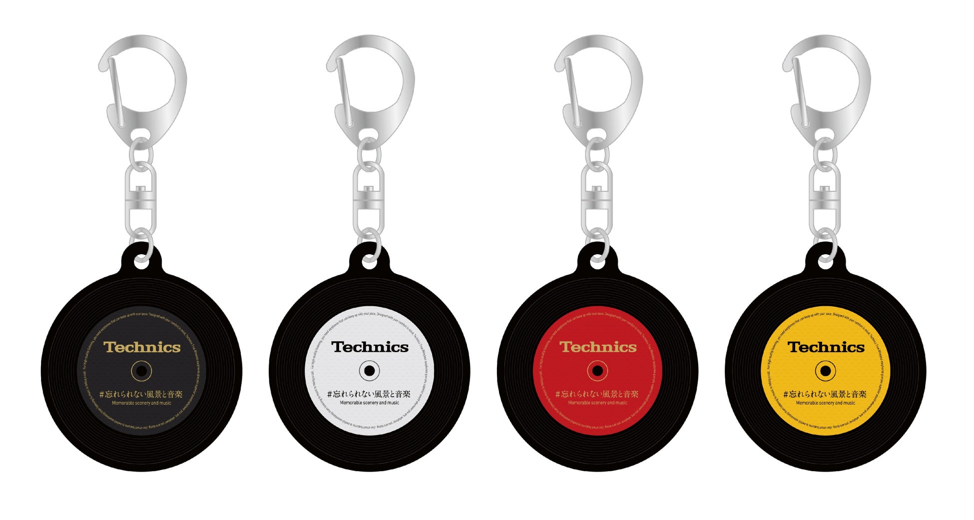 「忘れられない風景と音楽 プロジェクト」のコンセプトにちなんで、オリジナルプレイリストを物理的にも持ち運んで楽しんでいただくために、ミュージックキーホルダー「The Music」とタイアップしました。テクニクスともなじみの深いレコードをイメージしたデザインで、テクニクスオリジナルのミュージックキーホルダーを4種類制作。完成した4つのプレイリストのURLがそれぞれ収録されており、スマートフォンにかざすだけで再生いただけます。 キーホルダーは、今回のピールオフ広告のために制作したものであり、非売品です。