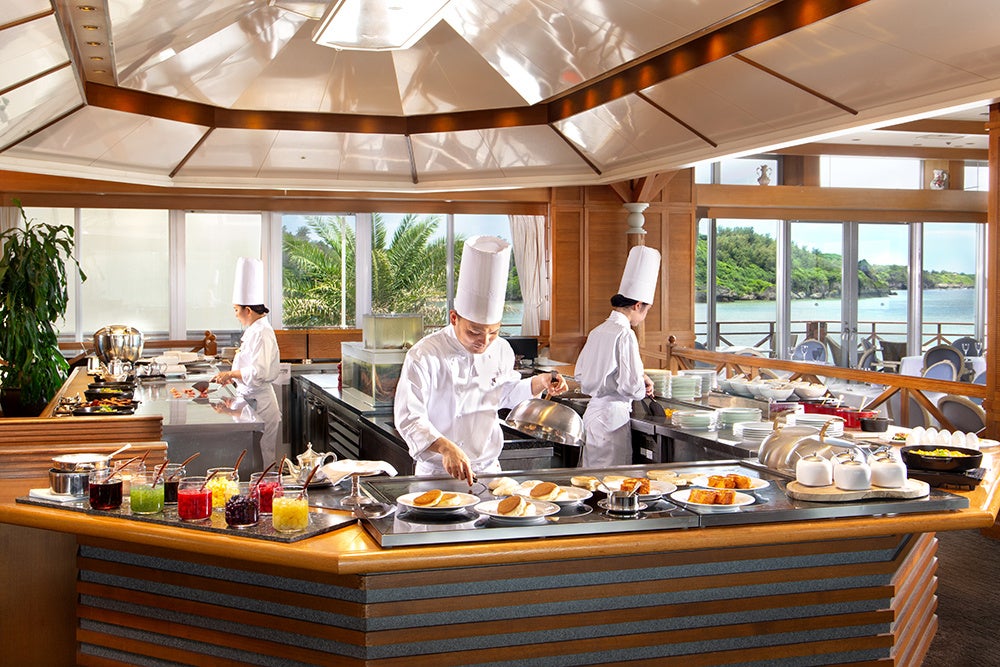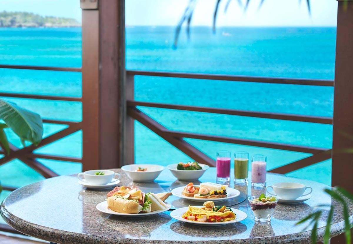 朝ごはんをハシゴできるって楽しい♪ ビーチを眺めながら、生絞りジュース、発酵バターを使ったクロワッサン、お子様に人気のカメさんメロンパンなど店内のオーブンで焼き上げるベーカリー、フレンチトースト、南国フルーツ、人参シリシリやゴーヤーチャンプルー、クーブイリチーほか沖縄郷土料理、和朝食etc. リゾート朝食の決定版。