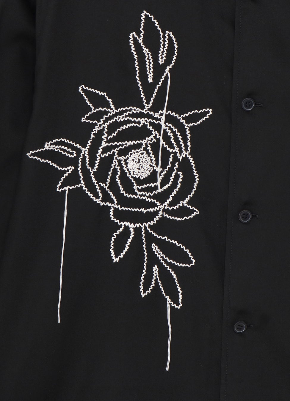 今回は、1色の生成りの糸で手縫いのようなジグザグステッチを施し、花とスカルをモチーフにした2型のシャツが登場します。 花の葉先からしずくがこぼれるように糸を垂らした繊細なデザインと、アシンメトリーに配置されたスカルモチーフが印象的なデザインを展開。どちらも刺繍の立体感を出さず、あえて平面的に仕上げることで、ステッチのラインが際立ち、遊び心のある独自の表情を引き出しました。