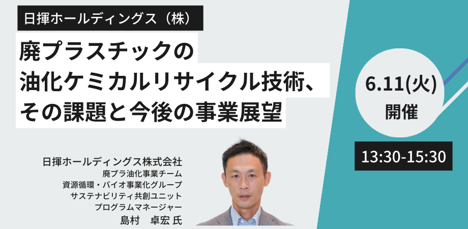 【JPIセミナー】日揮ホールディングス(株)「廃プラスチックの油化ケミカルリサイクル技術、その課題と今後の事業展望」6月11日(火)開催