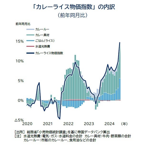 「カレーライス物価指数」は124.8 前年同月比14.7%増、14カ月連続のプラス