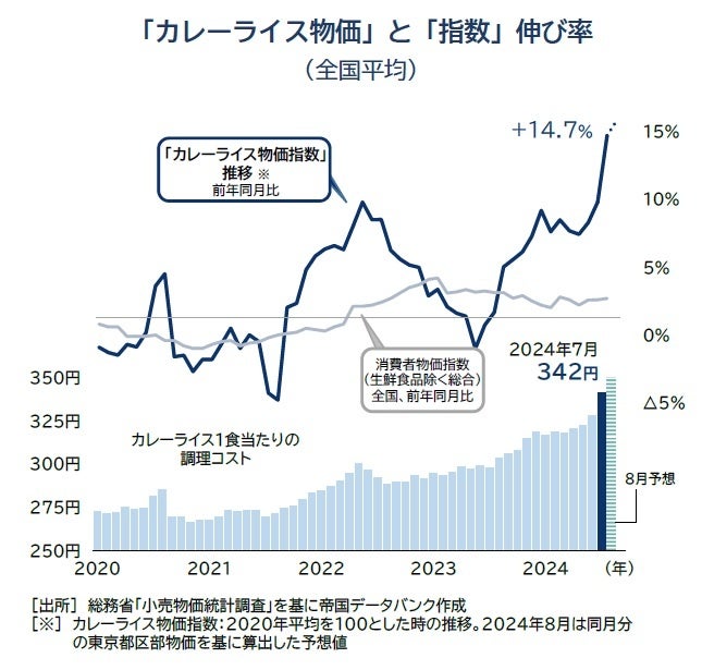 8月のカレーライス物価も最高値更新、1食350円突破の可能性 しばらく高値が続く見通し