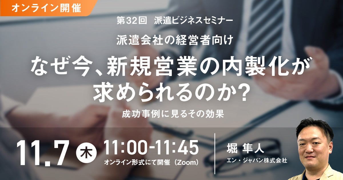 派遣会社の経営者が押さえるべき企業成長のカギを握る「新規営業の内製化」セミナー