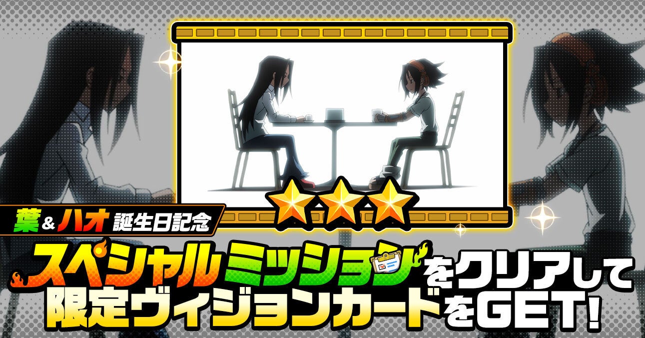 『SHAMAN KING ふんばりクロニクル』にて、主人公の麻倉 葉と大人気のハオの誕生日を記念して、ピックアップガチャを開催!限定ヴィジョンカードと1,000たまの無料配布も!