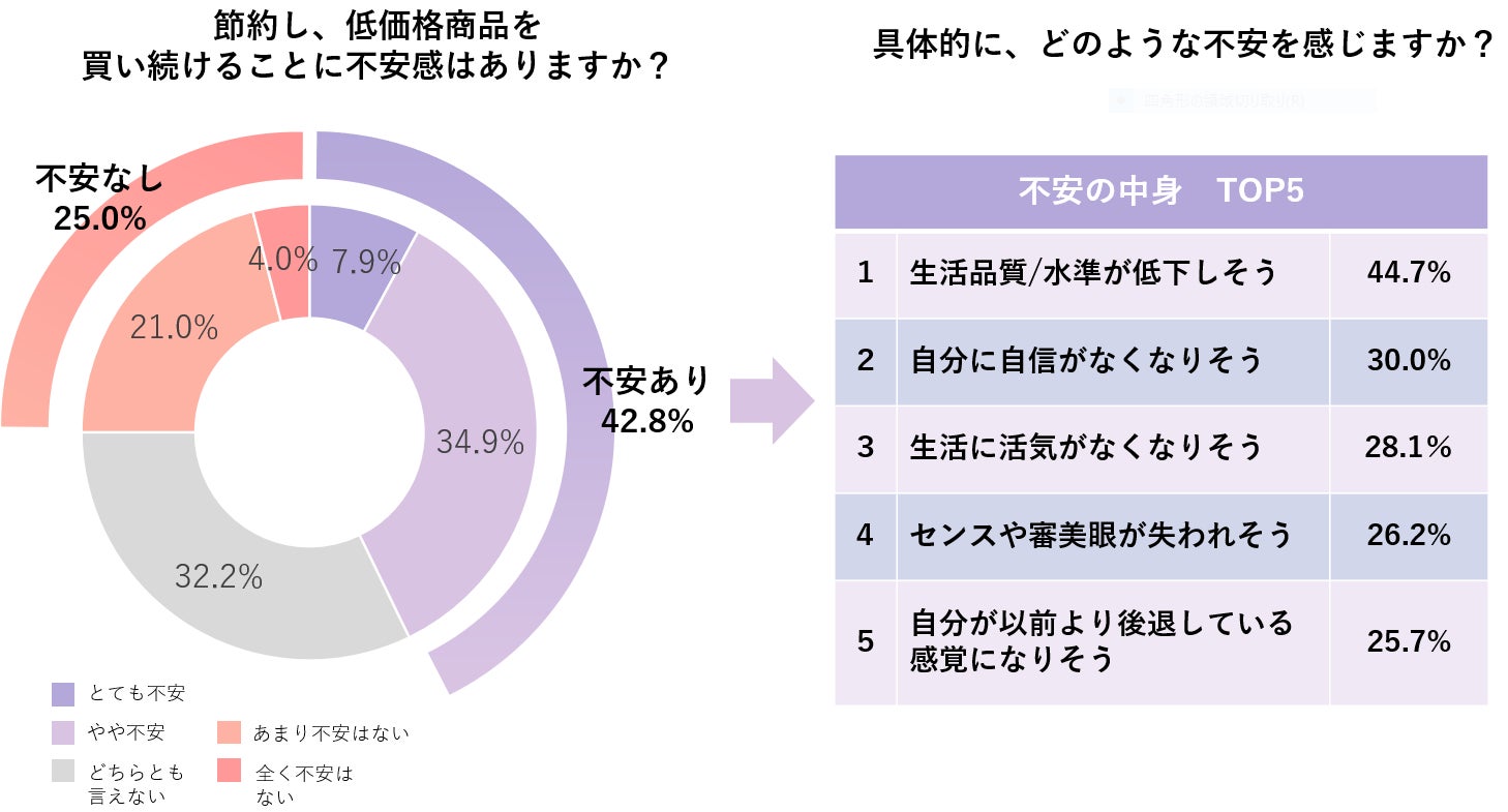 安価な商品ばかり選んでいくことに不安を感じる人も4割超。
